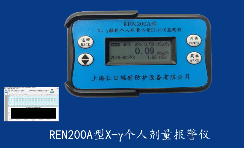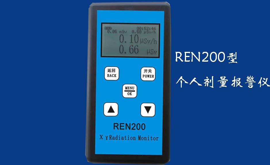 REN200A 個人輻射報警儀REN200A型X、γ輻射個人劑量當量HP(10)監(jiān)測儀(簡稱:個人劑量報警儀)內(nèi)置高靈敏度蓋格計數(shù)管為探測器,主要用來監(jiān)測各種放射性工作場所的X、γ以及硬β射線的輻射,具有響應快,測量范圍寬的特點。能顯示工作場所的劑量當量率和累積劑量,更換電池時,日期及累積數(shù)據(jù)能永久保存?蛇x配RenRiPersonal個人劑量管理軟件,該軟件可存儲多個人的歷史數(shù)據(jù),能記錄日累積、月累積、年累積、輻照時長、計算平均劑量率、扣除或不扣除本底輻射,且以文字和圖譜的方式展現(xiàn)數(shù)據(jù)。廣泛應用于核電站、加速器、鋼鐵、化工、同位素應用、工業(yè)X、γ無損探傷、放射醫(yī)療、鈷源治療、γ輻照、放射性實驗室、核設(shè)施周圍環(huán)境監(jiān)測等領(lǐng)域中的工作人員進行個人安全防護監(jiān)測及放射性提示。&nb